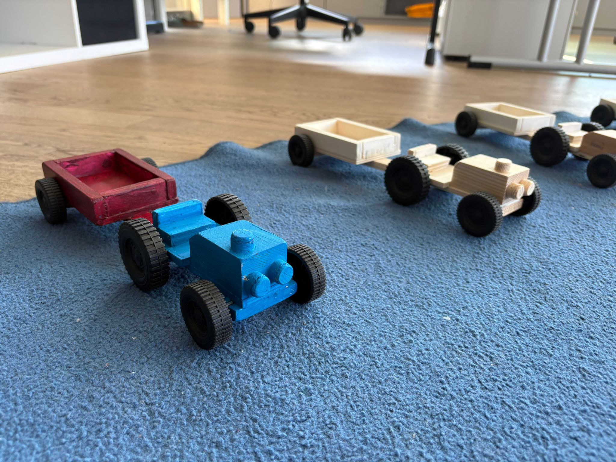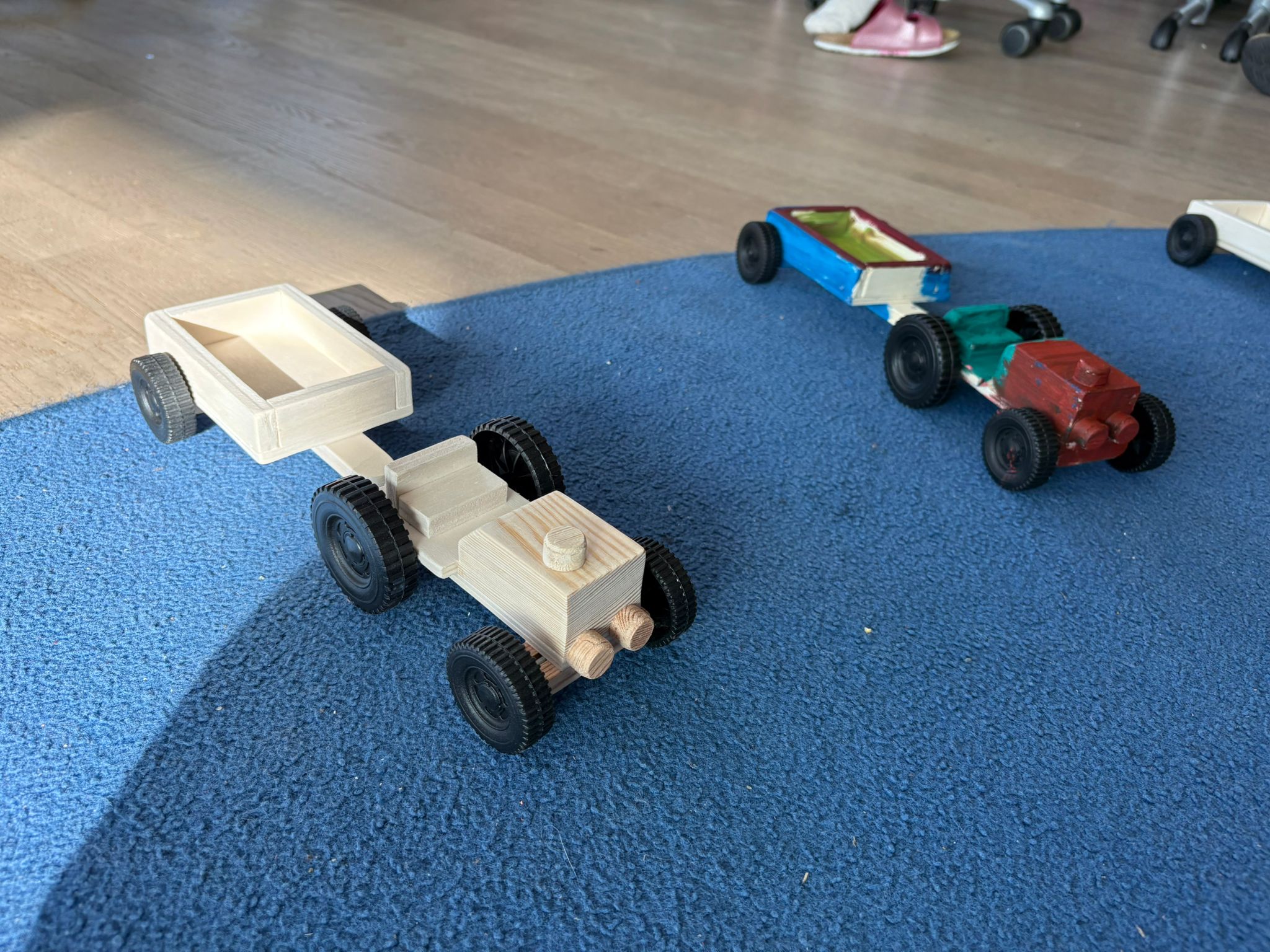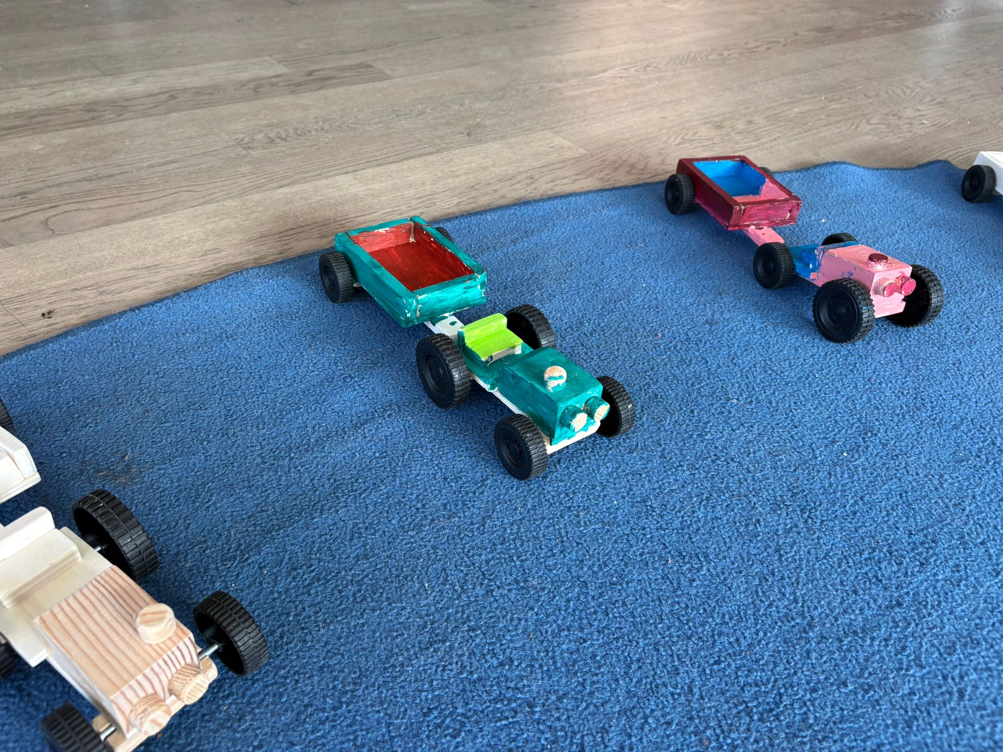 Mit der Säge in den Finger geschnitten? Längst vergessen! Mit dem Hammer daneben? Kaum der Rede wert! Am Ende bestaunten die Kinder ihre selbst gebauten Traktoren (inkl. Anhänger) und diskutierten die verschiedenen Bauschritte kritisch.